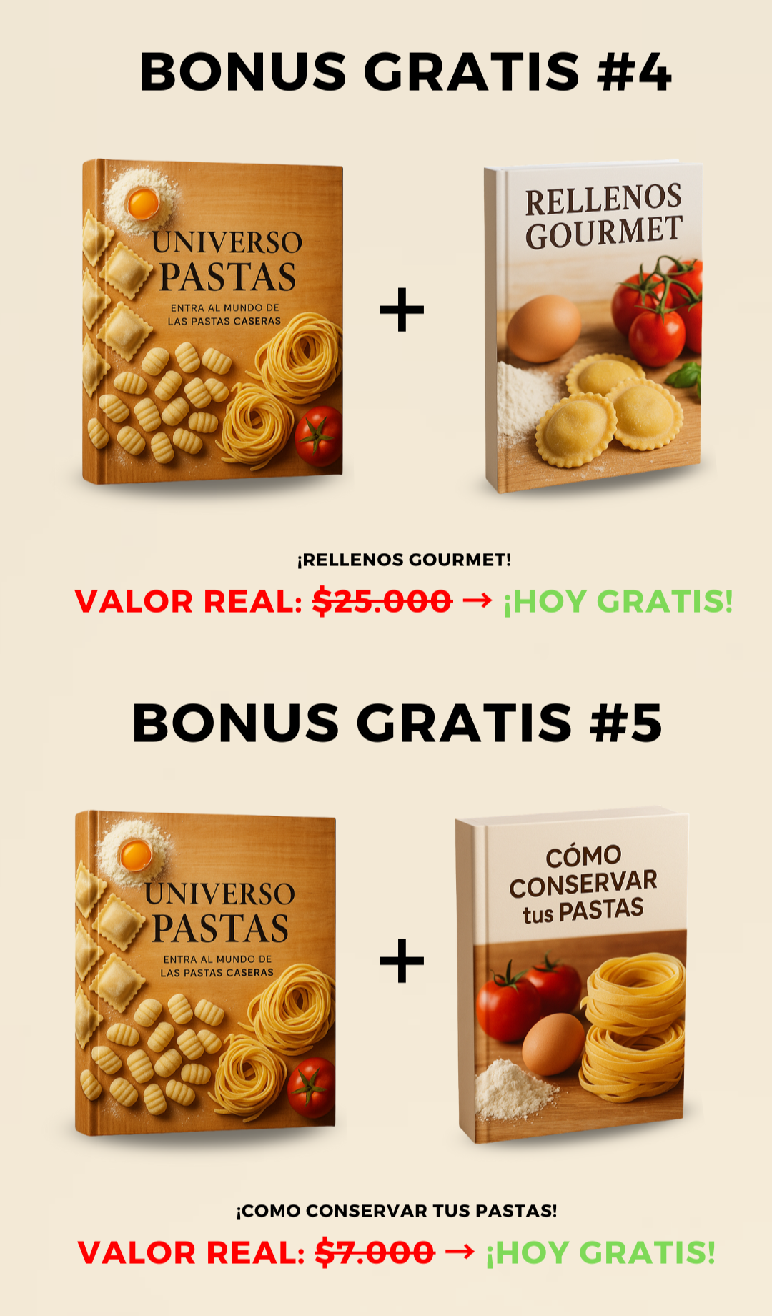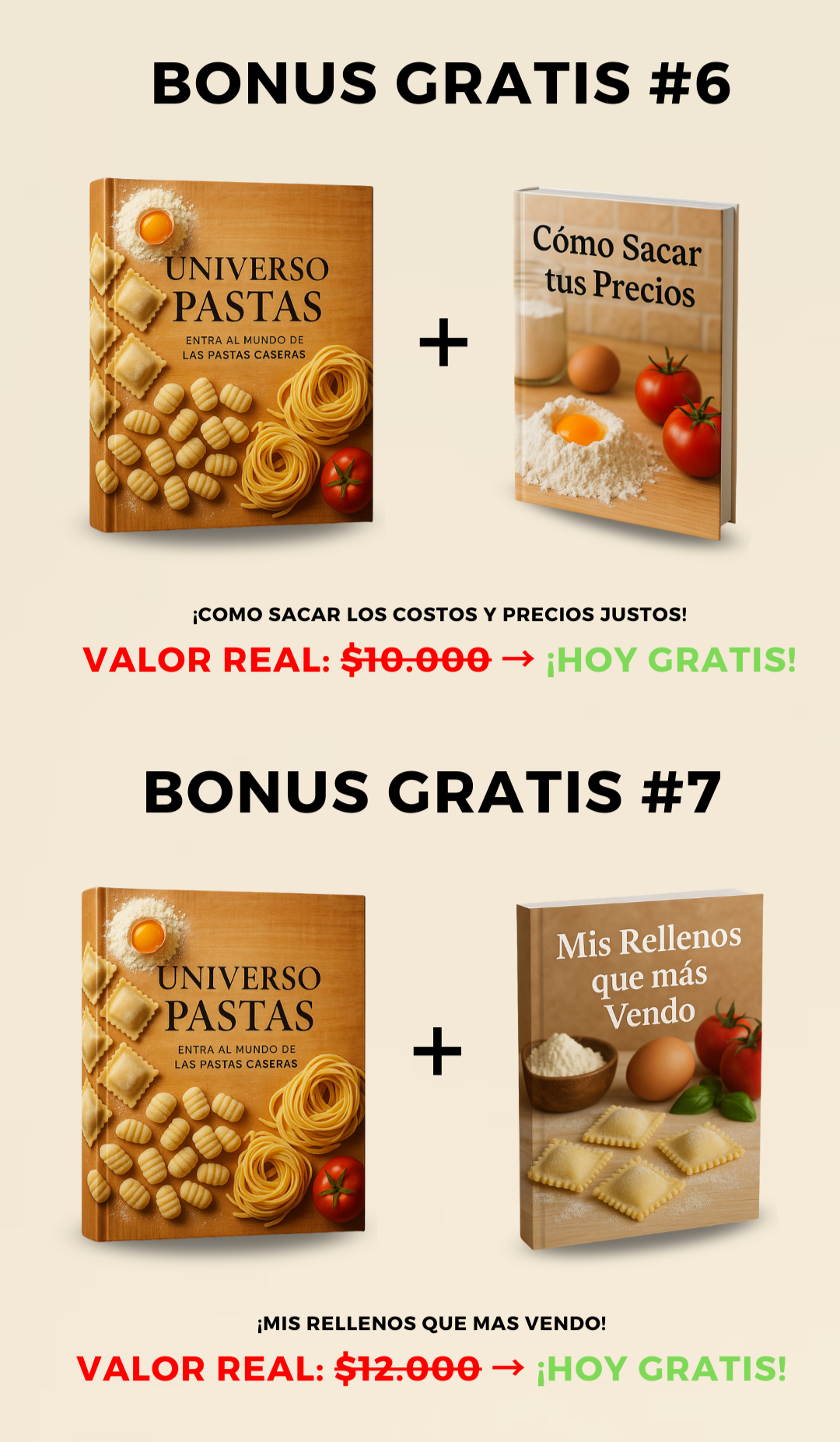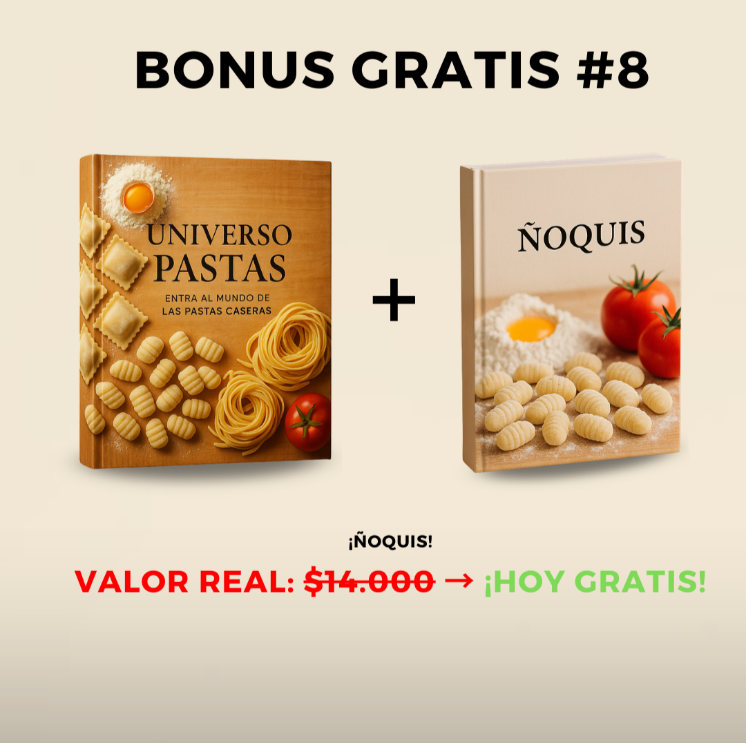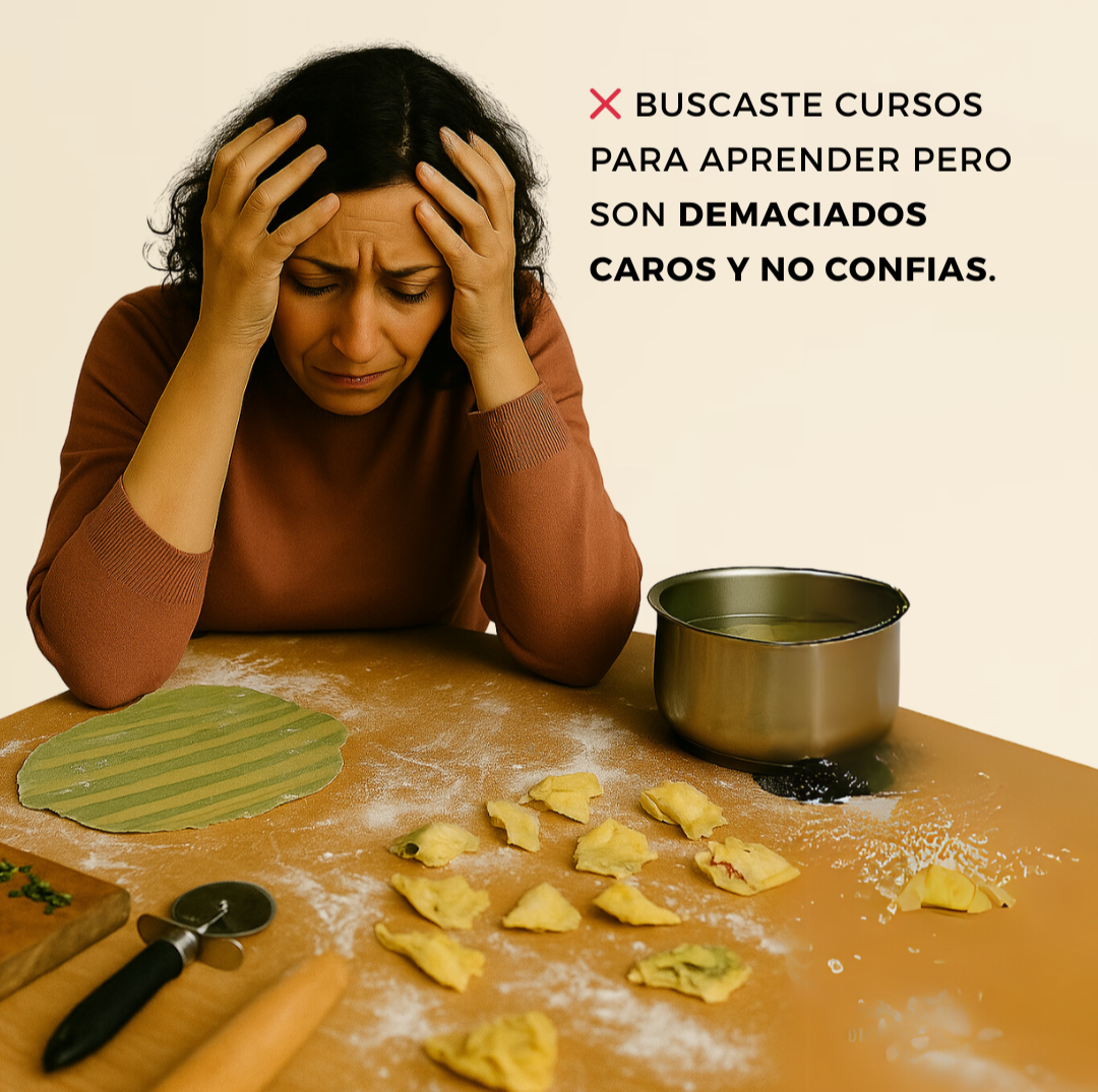 Te enseño todo el negocio: desde la masa y los rellenos hasta cómo poner precio, conservar tus pastas y empezar a vender con seguridad. Además, los BONUS resuelven los miedos más comunes.