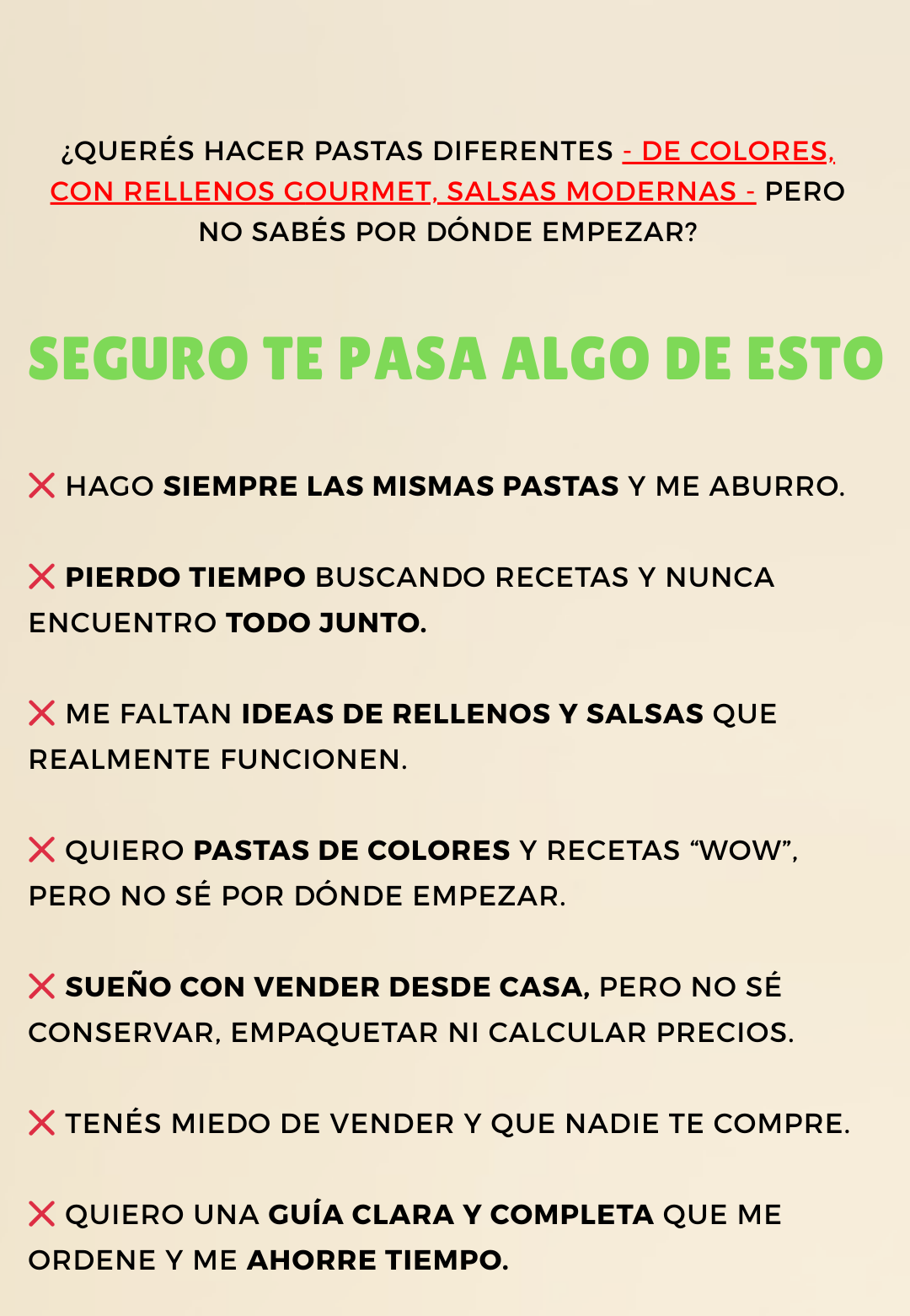 Sí. Este ebook está pensado para personas apasionadas por las pastas, no para chefs profesionales. Te enseño desde cero todo lo que necesitás: recetas, procesos, conservación, precios, ventas y más.